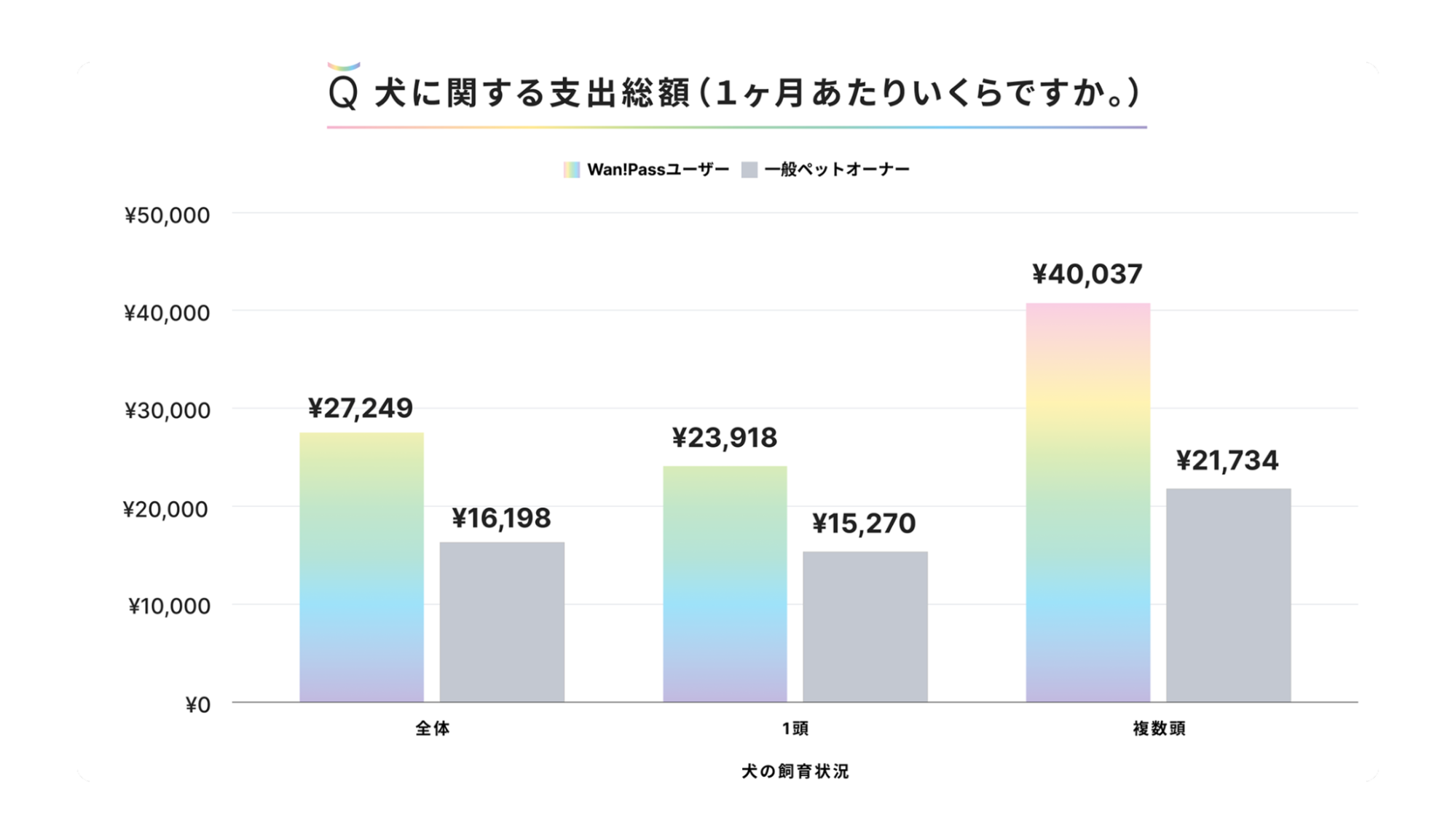 Wan!Passユーザーの犬関連の支出額は、一般ペットオーナーの約1.7倍です。