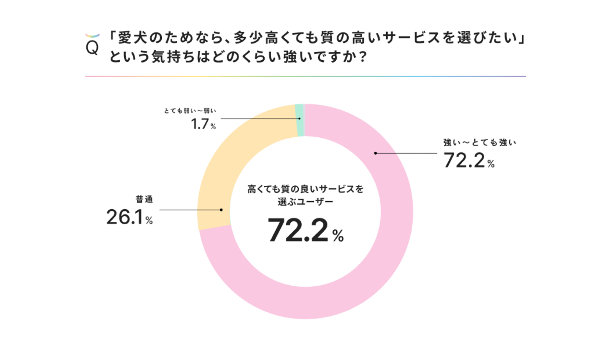 愛犬に対して強い愛着や愛情を持っているドッグオーナーが多いため、「多少高くても質の高いサービスを選びたい」という意向があり、いい商品であれば価格に関わらず積極的に購入されます。