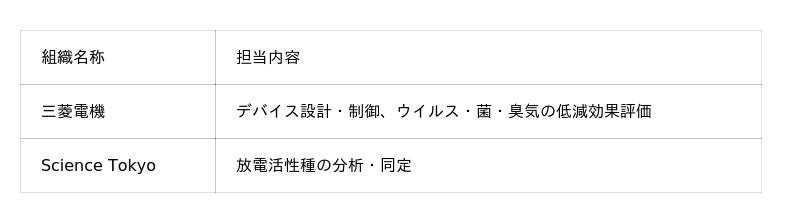 三菱電機株式会社は、国立大学法人東京科学大学(以下、Science Tokyo)生命理工学院の蒲池教授らと共同で、負イオンを併用することでオゾンの酸化作用を向上させるメカニズムを世界で初めて(※1)解明しました。これは、負イオンをウイルス・菌などの周囲に存在する水分に溶解させると、負イオン由来の硝酸系成分によりpHが低下するため、水分中のオゾンの酸化作用が高まり、低濃度オゾンでもウイルス・菌などに対し強力な低減効果を発揮することを明らかにしたものです。負イオンとオゾンを併用することで、オゾン濃度50ppb以下(※2)で、これまで報告(※3)してきた特定のウイルスに加えて、菌・臭気などに対する低減効果を確認しました。