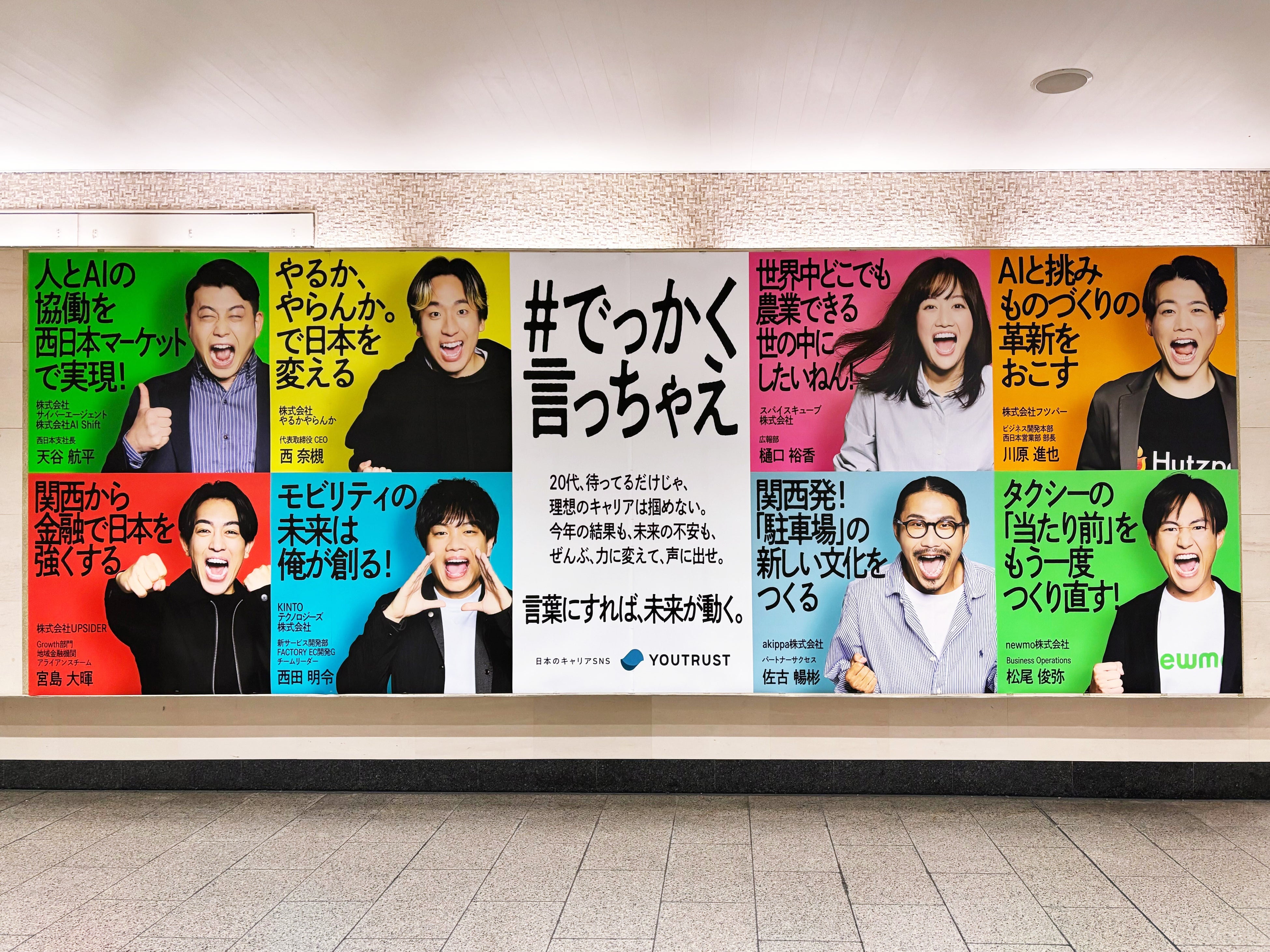 日本のキャリアSNSおよびネットワークリクルーティングサービスの「YOUTRUST」を開発・運営する株式会社YOUTRUST(本社:東京都渋谷区、代表取締役社長:岩崎由夏)は、2025年12月15日(月)~2025年12月21日(日)に阪急梅田 D-St. にて「#でっかく言っちゃえ」と題した広告の第二弾を展開することをご報告いたします。