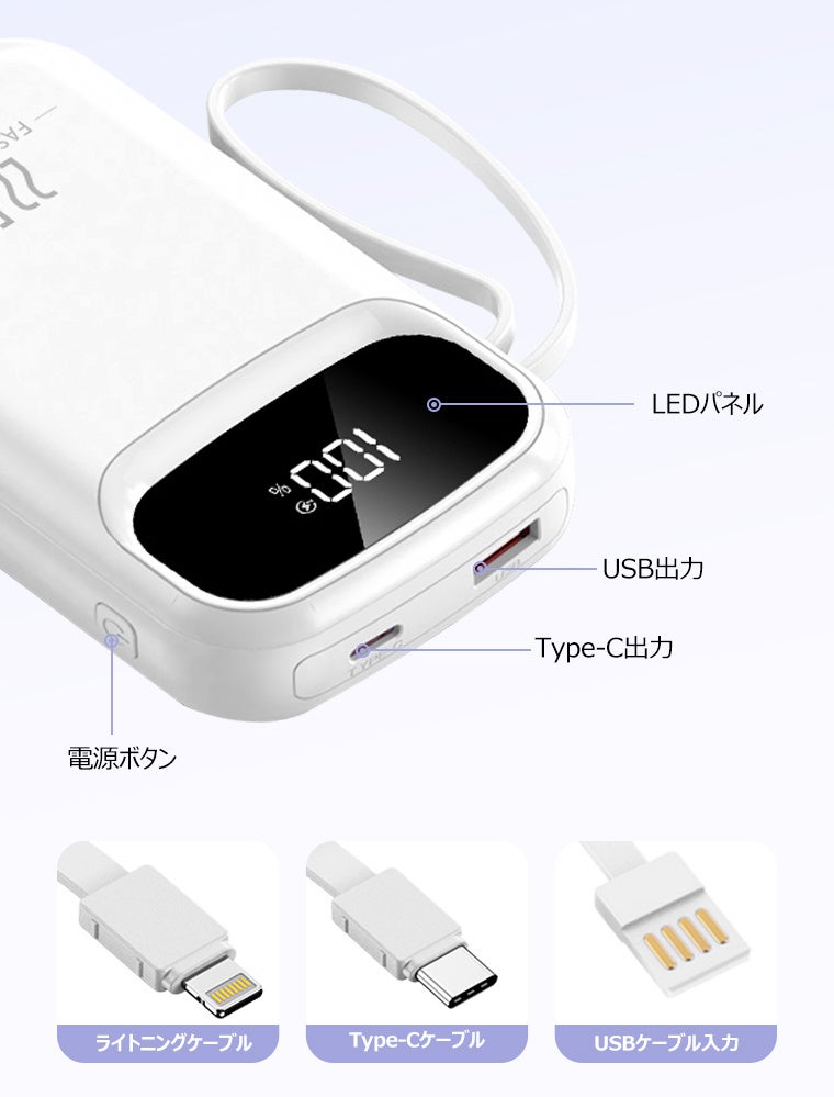 20000mAhの大容量により、スマートフォンやタブレットを複数回充電可能。