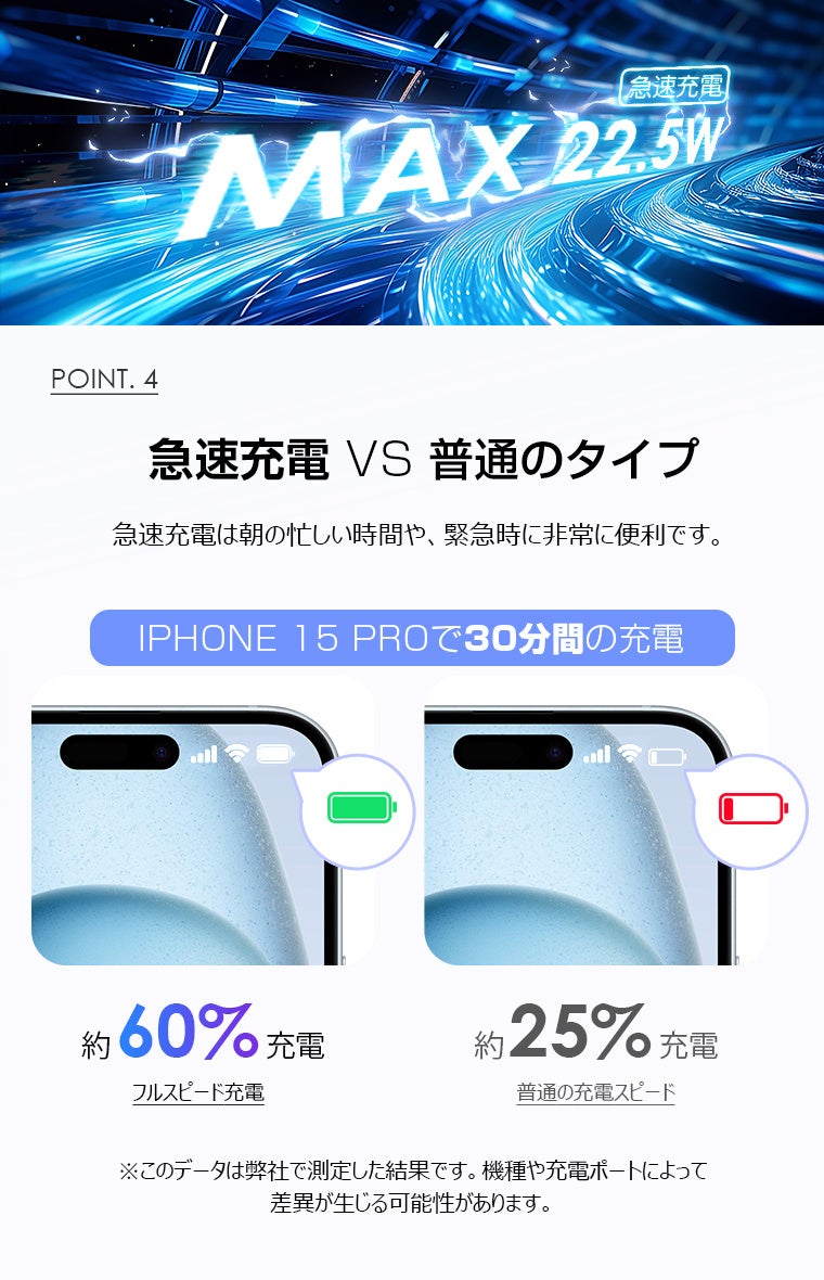 ■ 最大22.5Wの急速充電で、時間を有効活用