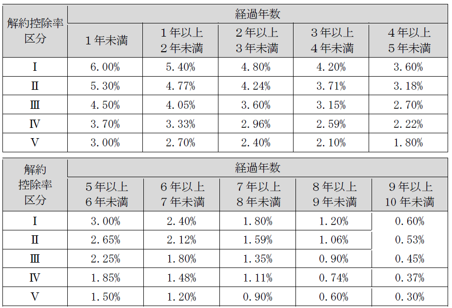契約日から10年未満で解約・基本保険金額の減額をされる場合は、基本保険金額(基本保険金額の減額の場合は減額部分)に対して解約控除率区分*4および経過年数に応じた解約控除率を乗じた解約控除費用を控除します。なお、契約日から10年以上経過している場合は、解約控除率は零となるため、解約控除費用の控除はありません。