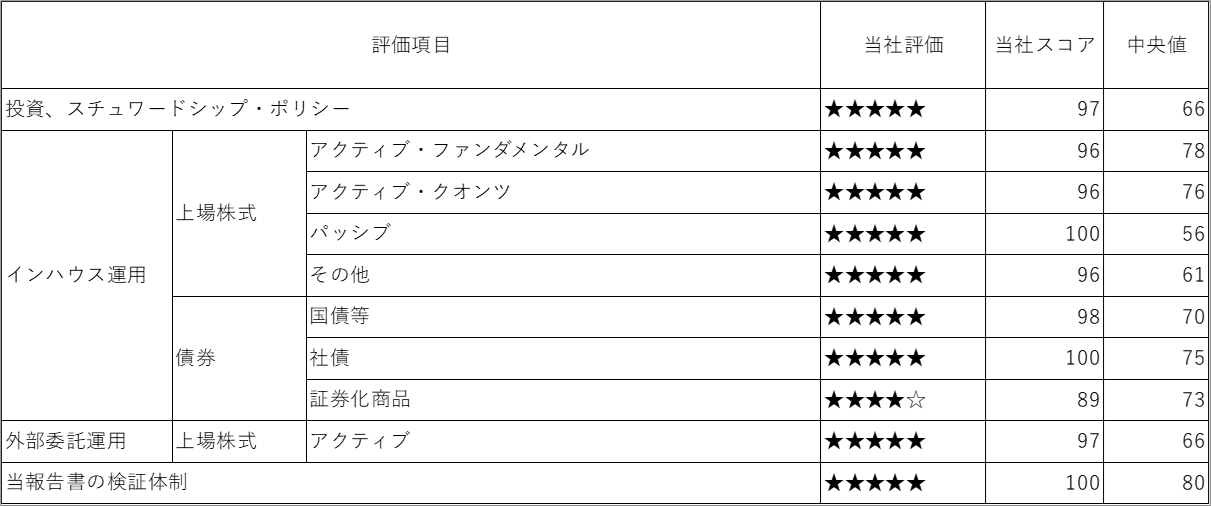 PRI署名機関は、毎年、各分野の責任投資の取組状況に関する報告書をPRIへ提出する義務があり、その報告書を元にPRIが年次評価を行ないます。今回の評価は2024年の活動を対象としており、各項目のスコアにおいてもそれぞれの中央値を大きく上回る結果となっています。当社は2006年5月PRIに署名後、一貫して責任投資に取り組んでおり、今回の評価獲得はこうした取り組みを積み重ねてきた結果であると考えています。