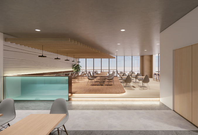 加えて、従業員の働きがい向上に資するべく、売店・カフェテリアスペース、ラウンジ、デッキテラス等、共用部の充実を図ります。