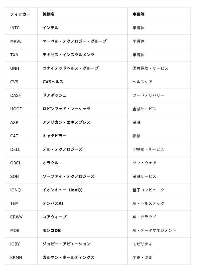 12月15日(月)「ひな株USA」追加銘柄(株式・ETF)一覧