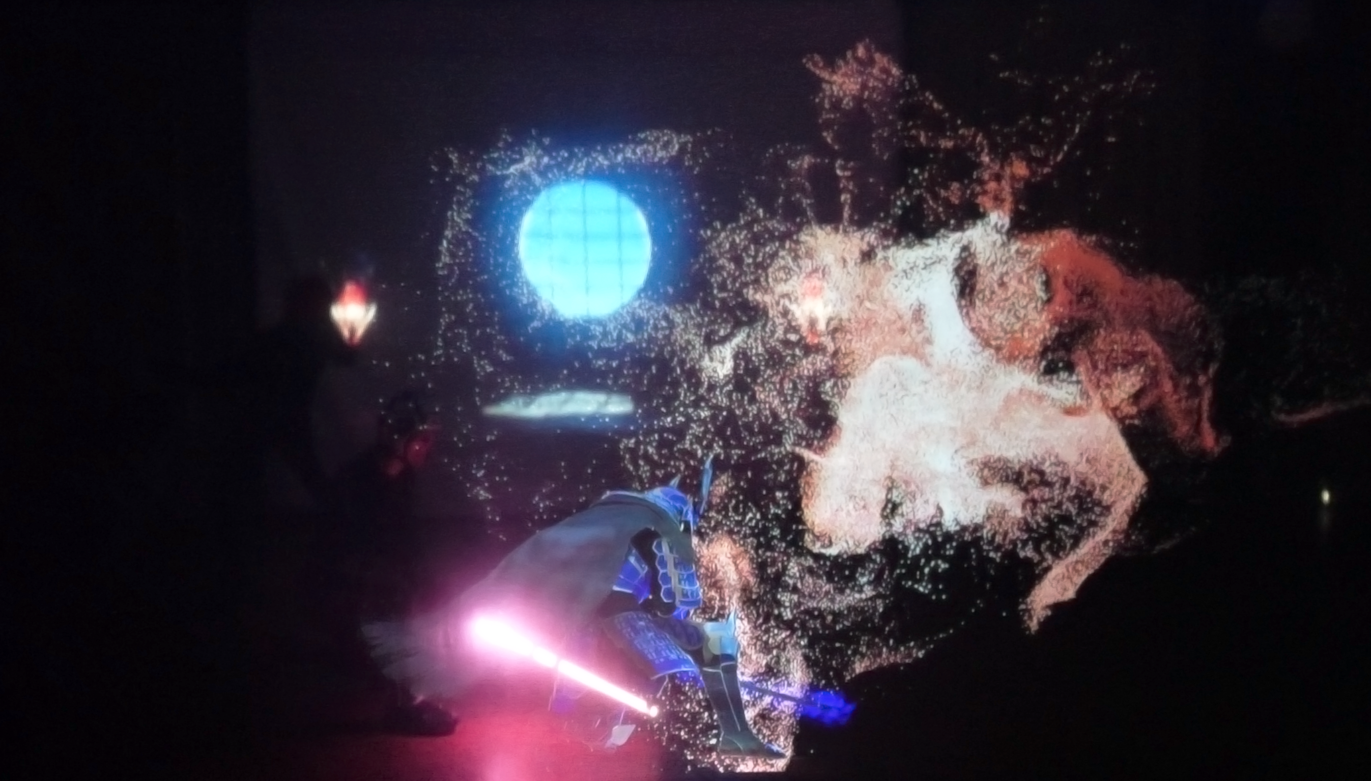 モーキャプアクターと3DCGキャラクターがAR技術を用いて、リアルタイムでアクションを繰り広げる構成に、来場者は驚き、楽しんでいただけたことでしょう。演出の森田淳也(株式会社スピード)は語る。解説役を務めたプロデューサーの岩木勇一郎(株式会社スピード)は、ゲームや映画などで培ってきたノウハウを用いて、3DCGモデリング、アニメーション、エフェクト、モーションキャプチャー、ARなどのデジタル要素を詰め込み、そこにモーキャプアクターのリアルな演技が組み合わさることで体感出来るバーチャライブシアターは、間違いなく世界トップの新たなコンテンツと言えるでしょう。また、日本独自のアクションは、きっと世界を驚かせると思います、と語った。