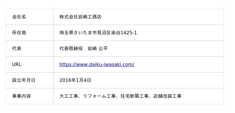 岩崎工務店様は主にハウスメーカーやビルダー等からの大工工事を請け負う建築業を営んでおり、リフォームや新築の戸建て一式工事も手掛けています。