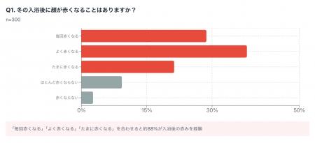 冬の入浴後に顔が赤くなることがあるか調査しました。