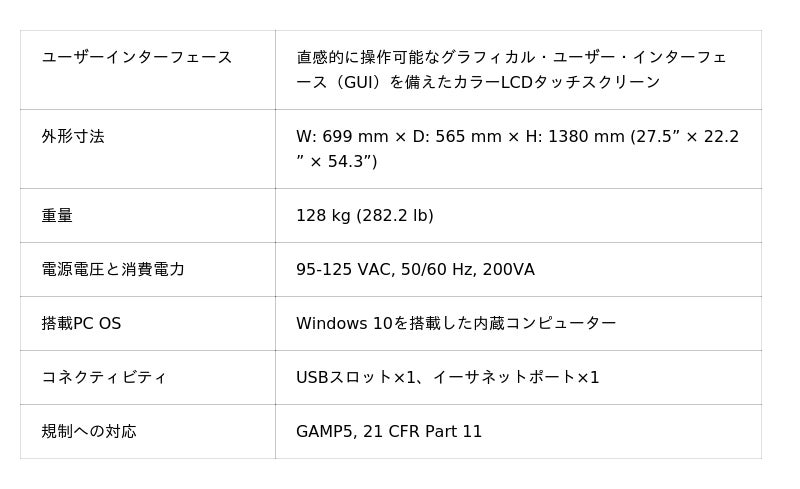 本装置は、当社のCellFiber(R)(細胞ファイバ)技術を用いて再生医療等製品向けの細胞の大量生産を実現することを目的に、2023年からセルファイバが国立研究開発法人日本医療研究開発機構(AMED)の医療研究開発革新基盤創成事業スタートアップ型(ViCLE)による環境整備の一部として支援を受け、その後、国立研究開発法人新エネルギー・産業技術総合開発機構(NEDO)のディープテック・スタートアップ支援基金/ディープテック・スタートアップ支援事業の支援を受け研究開発を行ってきたものです。本装置はGMP細胞製造における細胞の大量培養のために特別に設計されており、大量培養における細胞ファイバ製造プロセスを安定化および効率化し、製造時間を短縮します。また、適切な細胞培養環境を整えることで細胞機能の向上を実現します。