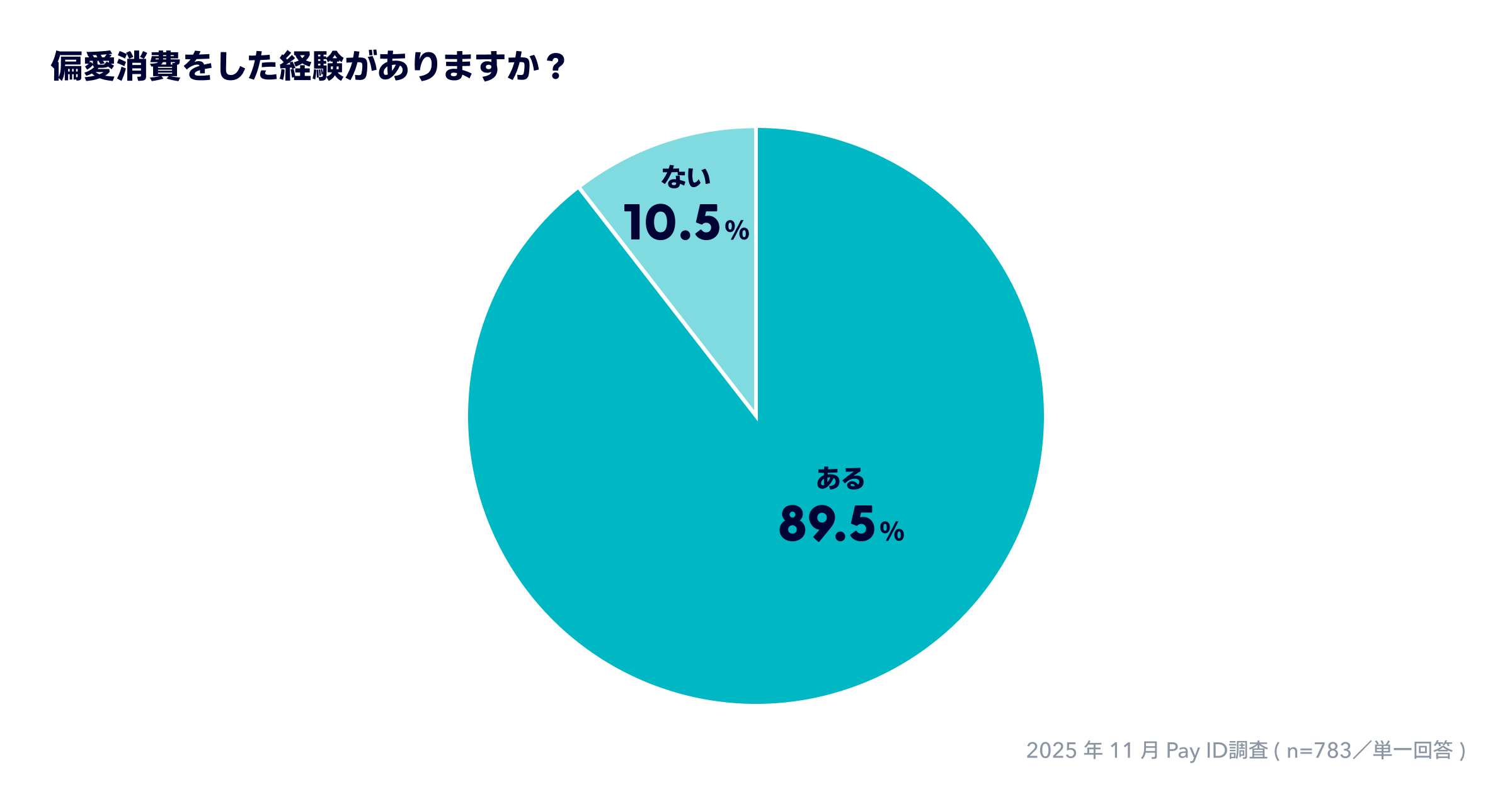 偏愛消費の経験に関する設問では、「ある」と回答された方が89.5%で約9割という結果になりました。