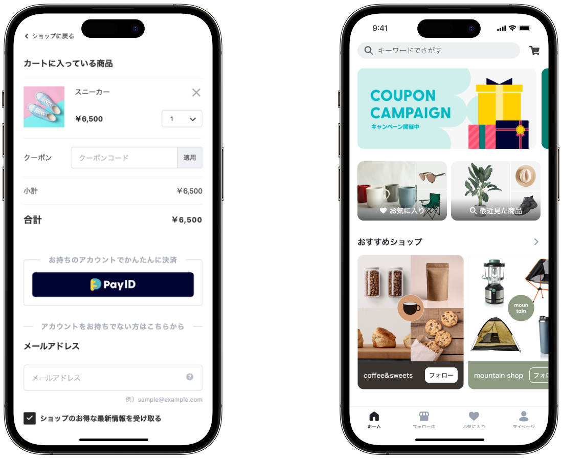 ネットショッピングでのスムーズな決済体験と、新しい商品との出会いや好きなショップでのリピート購入をサポートする購入者向けショッピングサービスです。