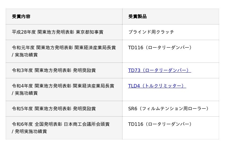 過去にTOKが発明表彰を受賞した製品