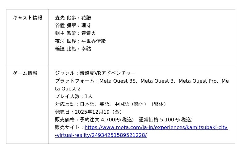 株式会社Gugenka(代表取締役CEO 三上昌史)は、本日2025年12月19日(金)にKAMITSUBAKI STUDIOより発売されるVRアドベンチャーゲーム『神椿市建設中。VIRTUAL REALITY』の開発を担当いたしました。