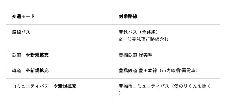 豊橋鉄道株式会社(取締役社⾧ 岩ヶ谷光晴/豊橋市駅前大通一丁目46番地の1)、豊鉄バス株式会社(取締役社⾧:岩ヶ谷光晴/豊橋市植田町字新津田38番地)および東三河地域公共交通活性化協議会(豊橋市・豊川市・蒲郡市・新城市・田原市・設楽町・東栄町・豊根村)は、このたび、東三河地域の公共交通利便性向上のため、2026年1月8日より既存の路線バス位置情報サービス「豊鉄バスナビ」の対象路線を拡充し、サービス終了した豊橋市システム「のってみりん※」の理念を継承した新システム「のってみりん+(プラス)」アプリとしてサービスを開始します。またサービス開始に伴い、東三河の移動をサポートする東三河MaaS「いこまい」との情報連携も実施します。