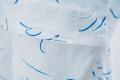 Tempo by known unknown のケーキパッケージで使用しているカラーを基に調整した、オリジナルのブルーインクで生地にプリントした特別なテキスタイルを制作しました。