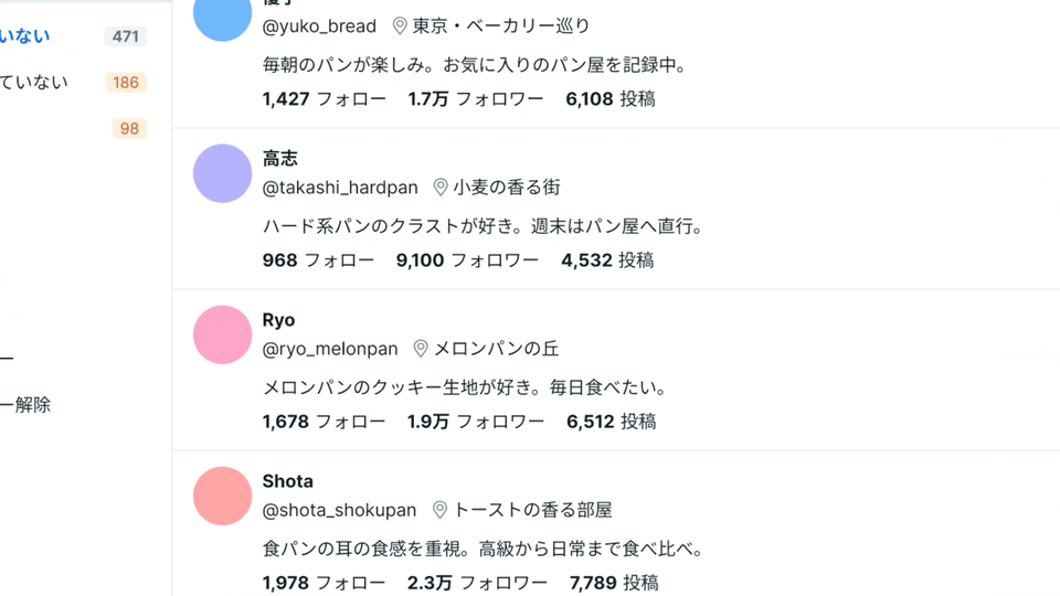 フォロー・フォロー解除をクリックするとすぐにリストが更新されるため、とてもスムーズに操作できます。