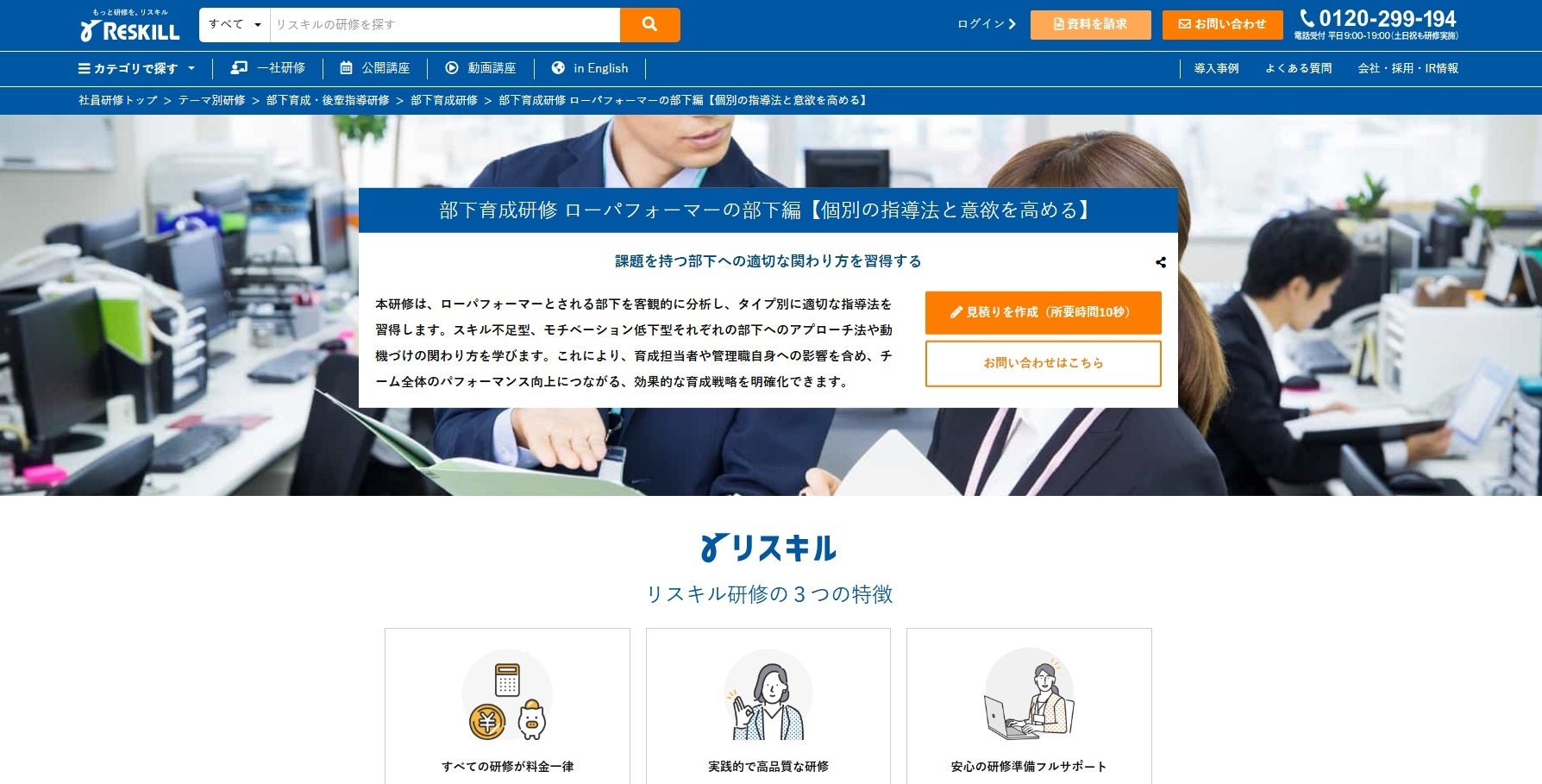 実践的指導に特化したリスキルの「部下育成研修 ローパフォーマーの部下編」