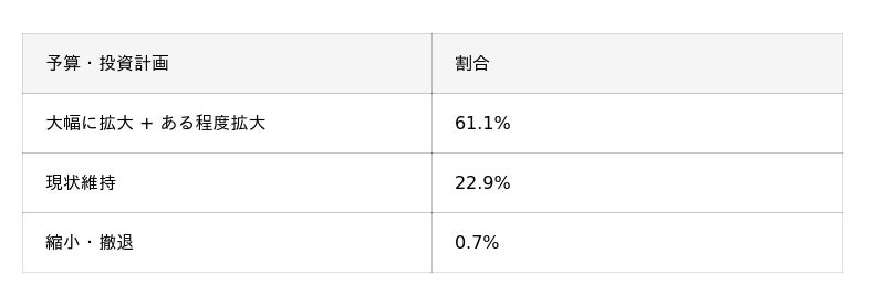 調査結果からは、61%が予算拡大を見込む追い風の中でも、セキュリティやガイドライン整備といった課題を着実に解決する必要性が示されました。