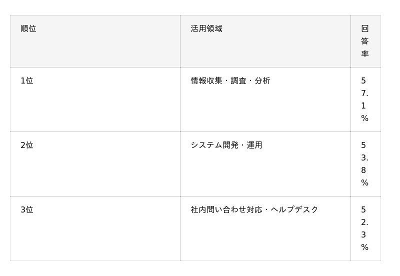 最大の課題は「ハルシネーション(50.3%)」。生成AIが事実と異なる情報を出力するリスクが、業務活用における最大の障壁として認識されています。セキュリティリスク、法的リスクと合わせ、技術的・組織的な対応の必要性が浮き彫りとなりました。