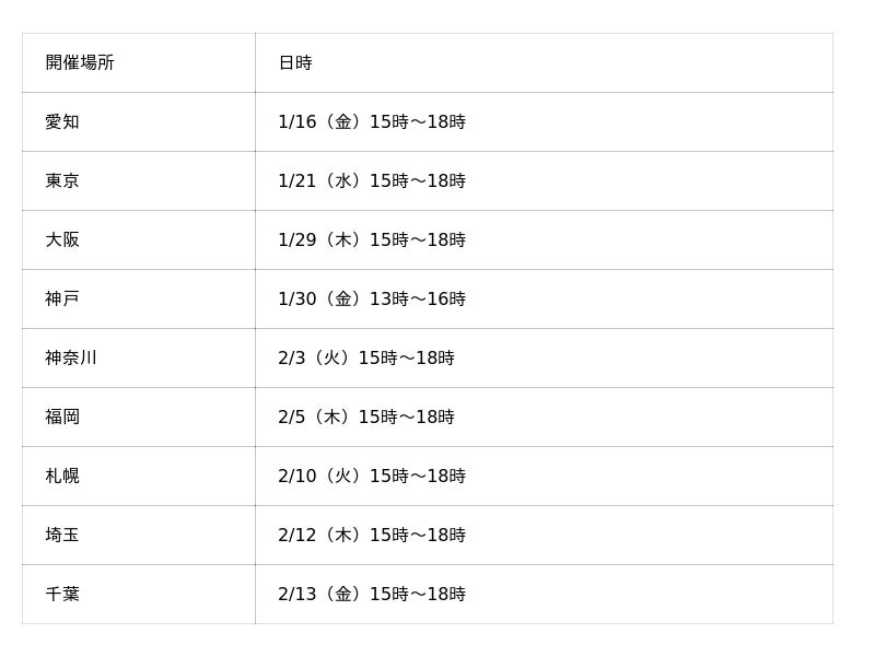 ご都合のよい場所・日程をご選択の上お申し込み下さい。
