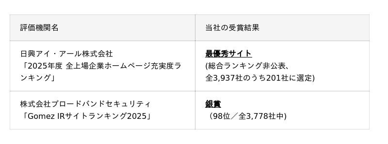*日興アイ・アール株式会社「2025年度 全上場企業ホームページ充実度ランキング」