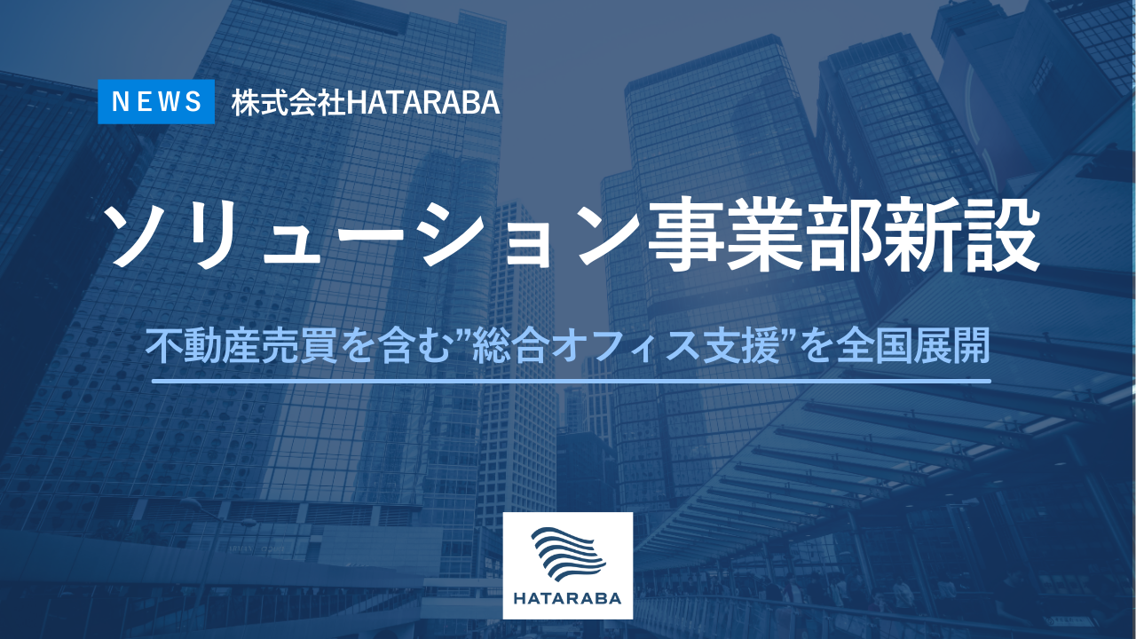 株式会社HATARABA(本社:東京都渋谷区、代表取締役:森村泰明)は、こうした全国的なニーズに応えるべく、東京・大阪を起点とした体制で不動産売買領域まで支援を拡大する「ソリューション事業部」を新設しました。