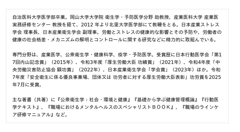 北里大学教授・堤明純氏、大賞受賞2法人も登壇!「ストレスチェック大賞2025」記念ウェビナー開催