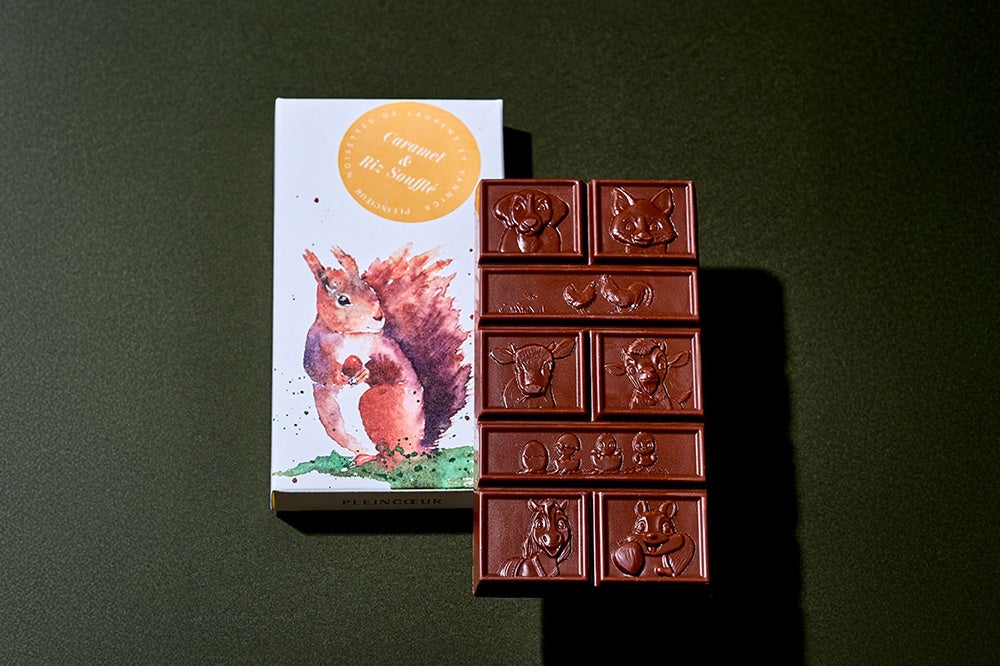 ノルマンディー出身のマキシム・フレデリック氏によるブランド。2024年パリ17区にお店をオープン。2025年には「ワールド・ベスト50」誌で世界最優秀パティシエの称号を獲得。軽やかな食感のライスパフと濃厚なキャラメルを、なめらかなミルクチョコレートで贅沢に閉じ込めたタブレット。