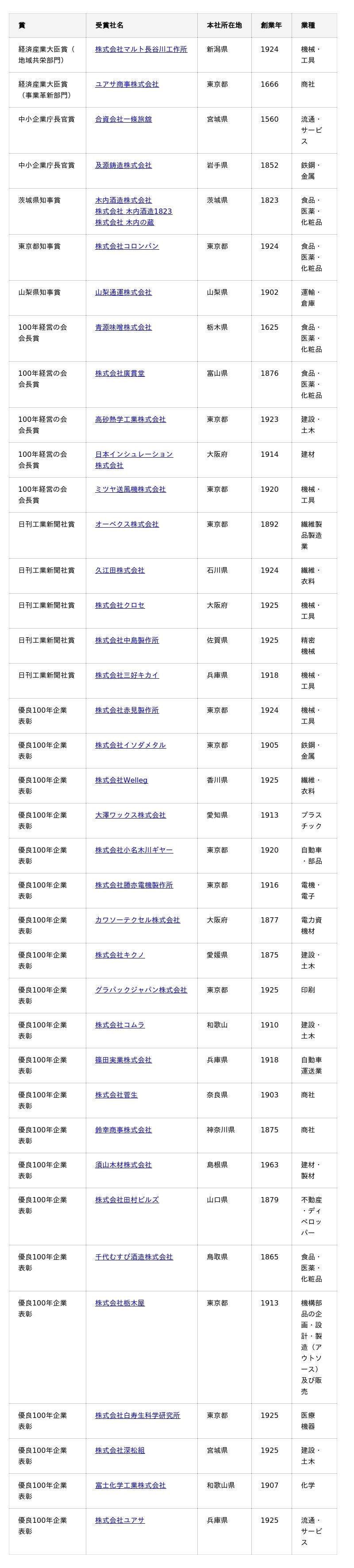 ■ 第7回100年企業顕彰 受賞企業(全38社)