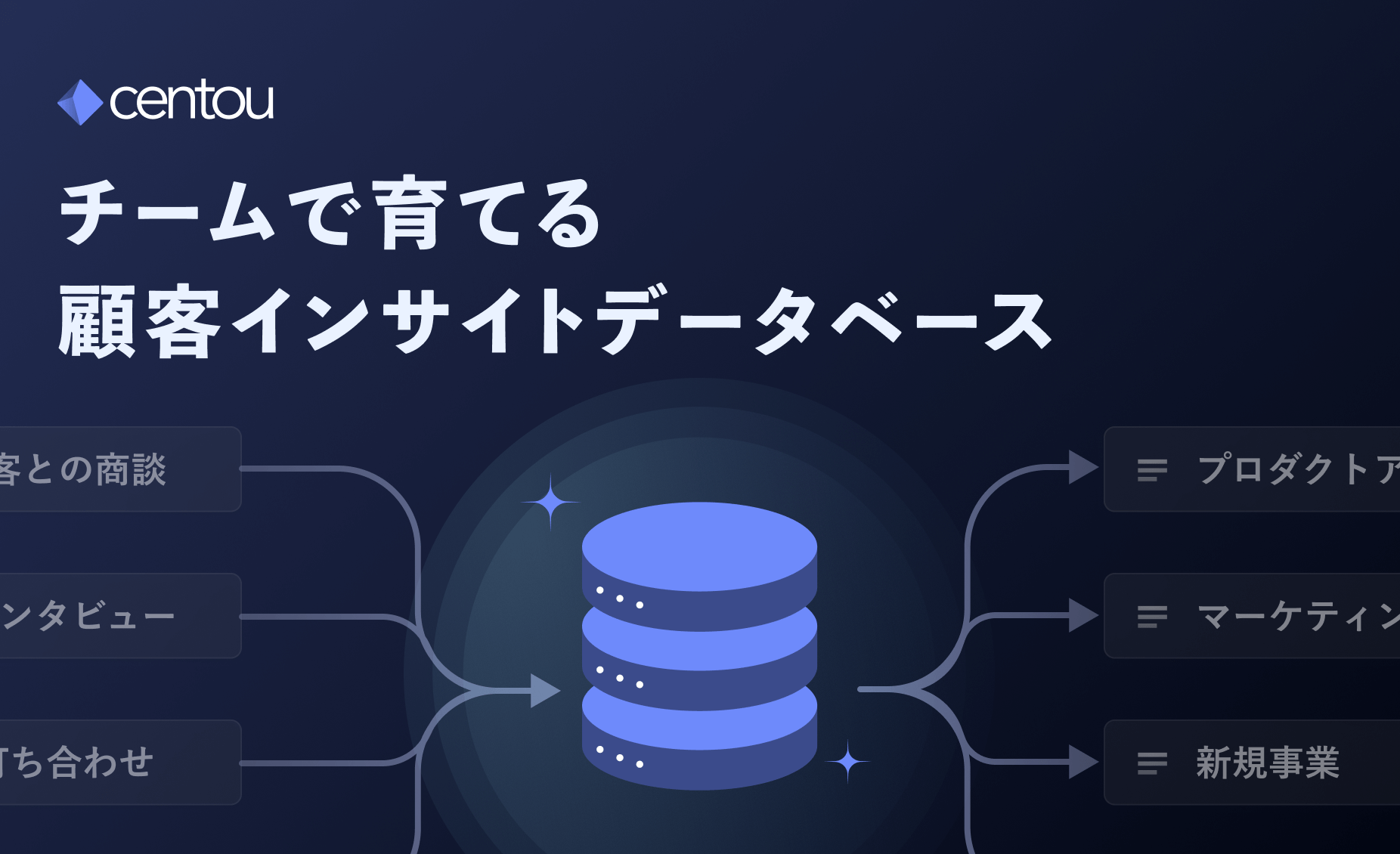 「Centou」は、ユーザーインタビューや顧客サポートなどで得られた顧客インサイトを管理する、日本初のインサイトマネジメントクラウドです。