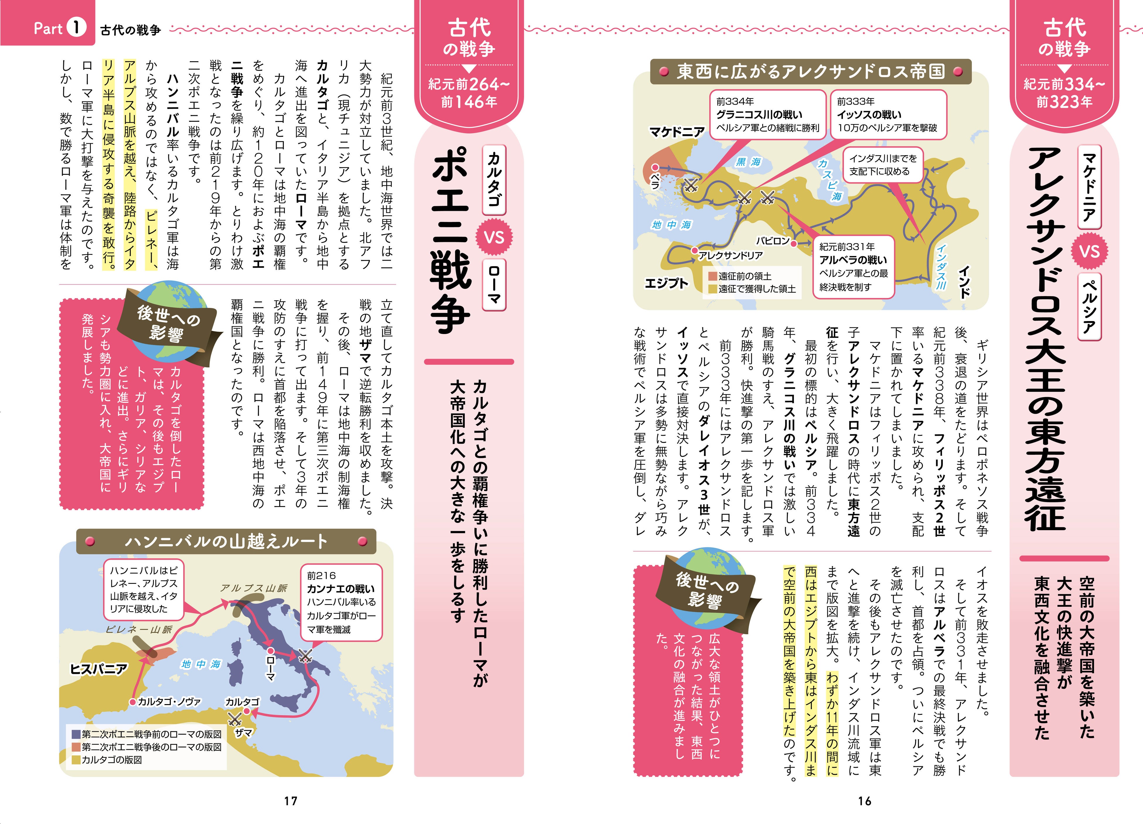 「なぜ争いが起きたのか」「その結果、世界(社会)はどう変わったのか」。複雑な歴史の経緯を、本シリーズならではのわかりやすい地図とイラストで整理し、「戦争の歴史や戦国のリアルをスッと頭に入れてニュースや文化の理解を深めたい」「教科書等では面白味に欠けて学びが進まない」といった方にピッタリな歴史読本に仕上げました。