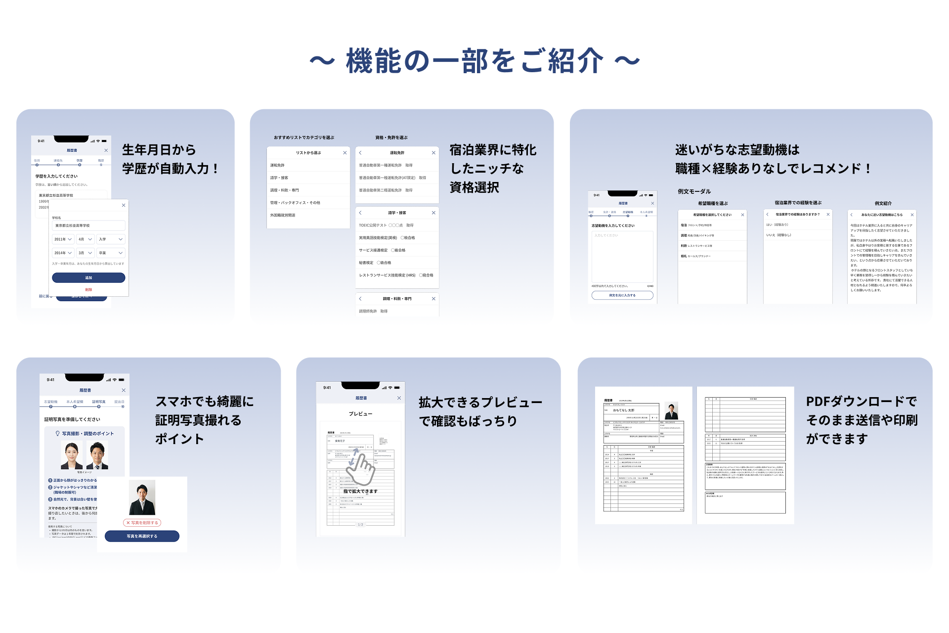 宿泊業界の転職活動において、障壁の一つが「応募書類の作成」です。特に、仕込みや接客で多忙な現場スタッフにとって、パソコンでの書類作成や手書きの履歴書用意は大きな負担となっていました。