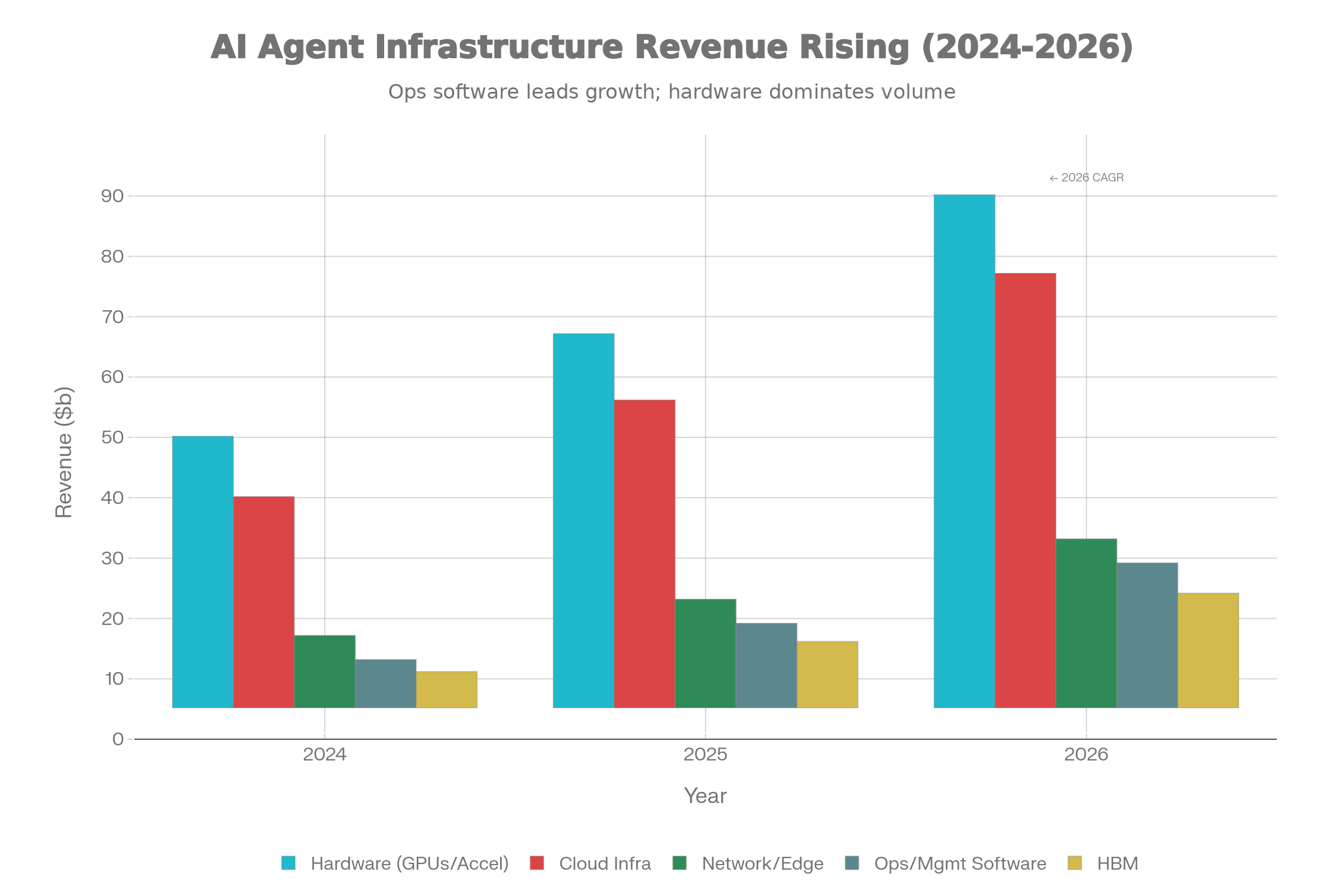 ・ ハードウェア市場(GPU/アクセラレータ)は2024年450億ドルから2026年850億ドルへ、**CAGR 37%**で成長
