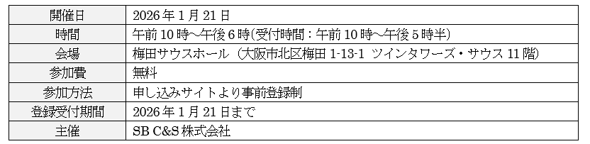 「新しいテクノロジーをいち早く、より使いやすい仕組みやかたちにして全国にお届けする」というソフトバンク創業以来の役割を担うSB C&S株式会社(以下「SB C&S」)は、最新テクノロジーと共創をテーマにした販売パートナーと法人のお客さま向けのイベント「INNOVATION FORUM 2026 in OSAKA」(以下「本フォーラム」)を2026年1月21日に大阪で開催します。