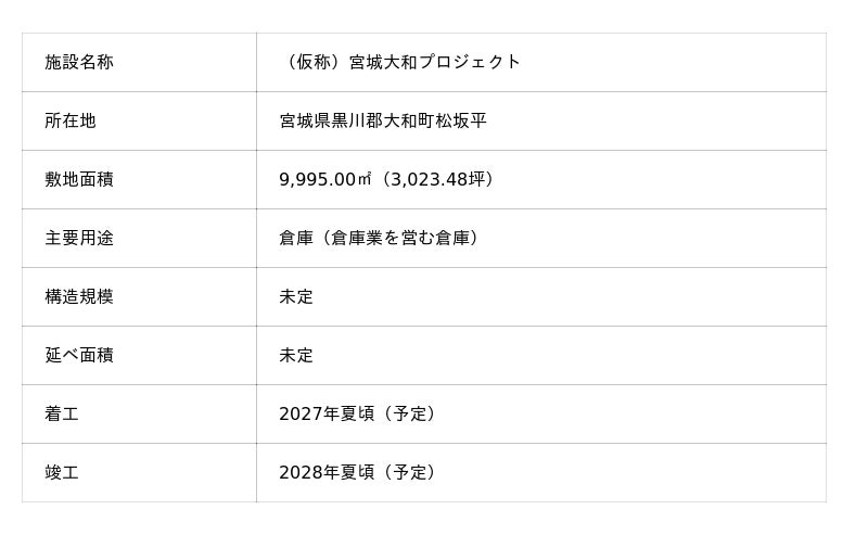 物流施設「(仮称)宮城大和プロジェクト」の開発に着手