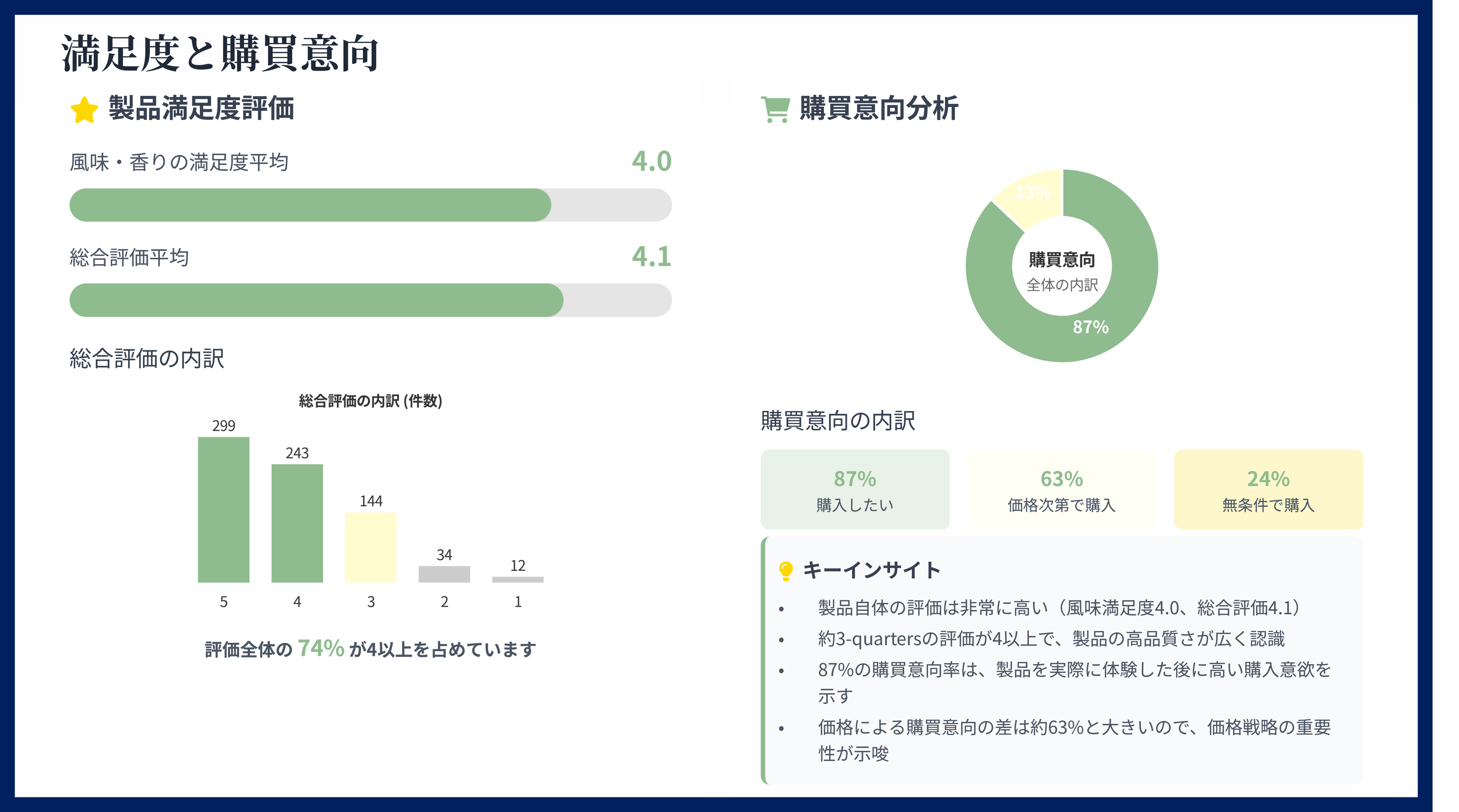 試食した消費者に対し、味や見た目だけでなく、「適正と感じる価格帯」「贈答用パッケージの好み」「購入意向」などを詳細にアンケート調査します。感覚的な「美味しい」を定量データとして