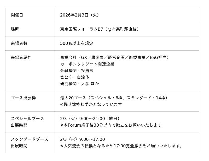 【残り数枠】Carbon Credits Journal Forumへのブース出展企業を募集
