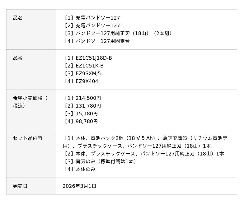 ▼[プレスリリース]「充電バンドソー127」を新発売(2026年1月9日)