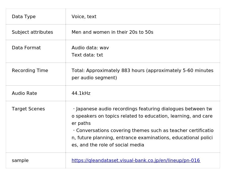 Qlean Dataset、「日本語・2話者・教育テーマトーク音声コーパスとトランスクリプト」を提供開始