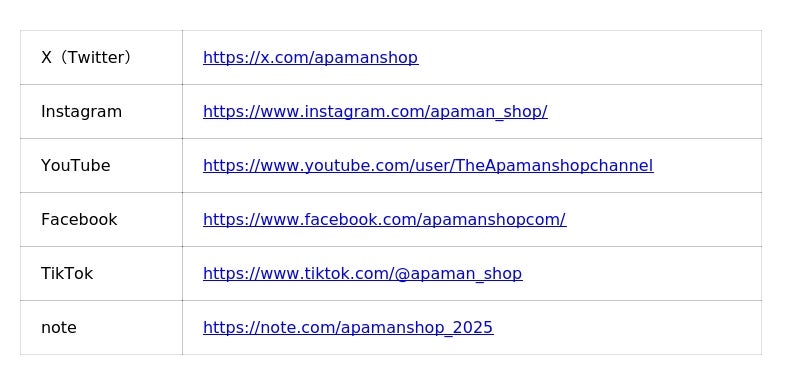 ※本企画はAPAMAN株式会社によるもので、各SNSの提供・協賛ではありません。