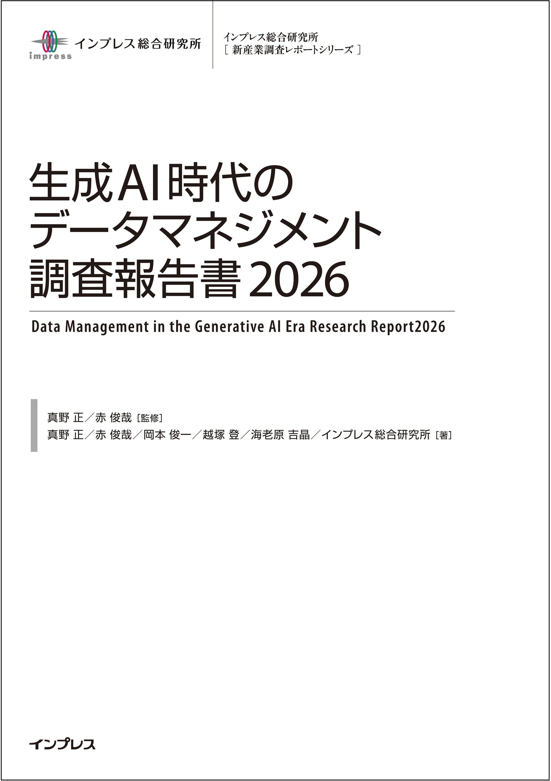 インプレスグループでIT関連メディア事業を展開する株式会社インプレス(本社:東京都千代田区、代表取締役社長:高橋隆志)は、データマネジメントに関する調査結果を発表します。また、本調査の詳細は、新産業調査レポート『生成AI時代のデータマネジメント調査報告書2026』(https://research.impress.co.jp/DM2026)として、2026年1月13日(火)に発売いたしました。