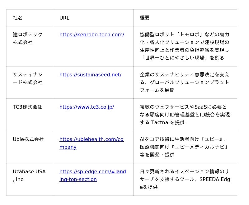 Phase3は、米国企業とのPOC(概念実証)や商談の改善を通じ、海外でのトラクション拡大を目指すフェーズです。採択企業は2026年3月に米国サンフランシスコへ渡航し、現地での商談およびDemo Dayを実施予定です。