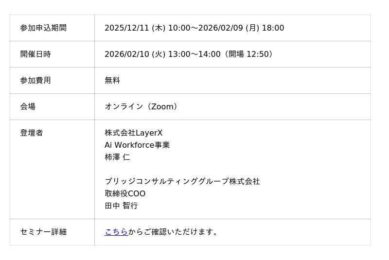 【2/10オンライン開催】AIでここまで変わる!経理・管理部門の業務効率と監査対応の最前線 ~ブリッジコンサルティンググループ×LayerX共催セミナー~