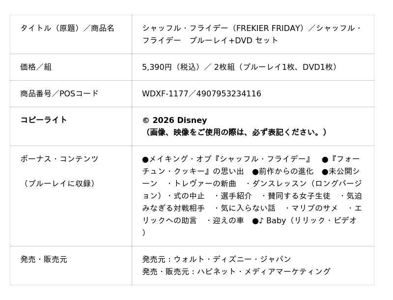 ティーンエイジャーの心を掴んだ名作『ハイスクール・ミュージカル』『ハンナ・モンタナ』のディズニーが贈る、笑って、笑って、ちょっぴり泣ける、最高のハートフル・ムービーで、『フォーチュン・クッキー』(03)の続編『シャッフル・フライデー』を、本日1月14日(水)ブルーレイ+DVDセットで発売いたします!