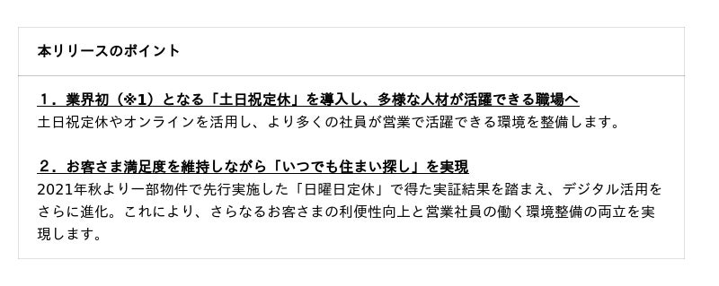 業界初※1 営業社員の「土日祝定休」の導入による営業社員の働く環境整備と、デジタル活用で「いつでも住まい探し」を可能とするお客さま利便性向上の両立を実現
