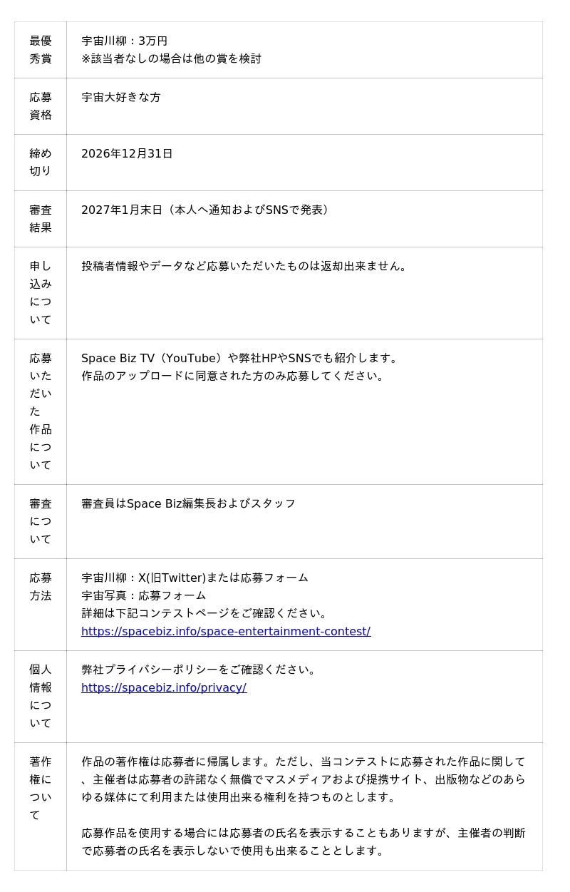 新たな宇宙文化を創造するSpace Biz 宇宙エンタメビジネス研究会(運営会社 ノバリ株式会社)が 今年も「2026年 宇宙エンタメコンテスト」を開催します。