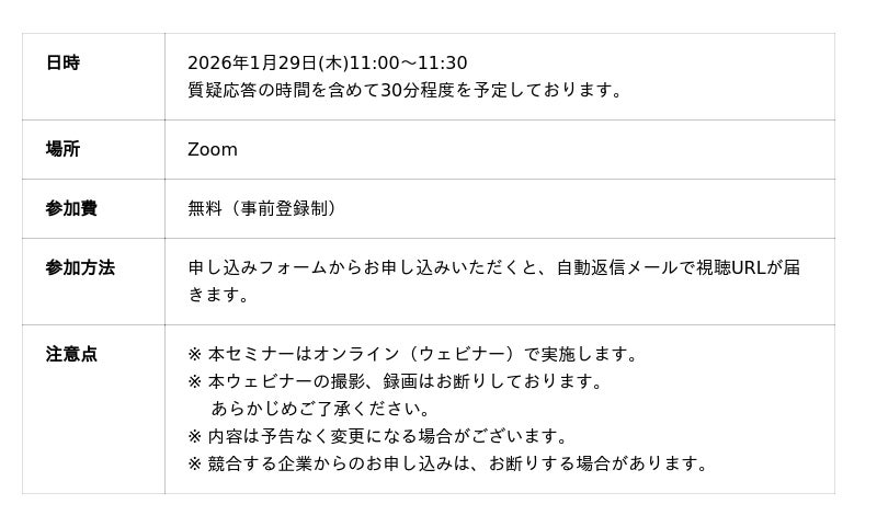 過去に開催し、好評いただいたウェビナーを再演いたします。