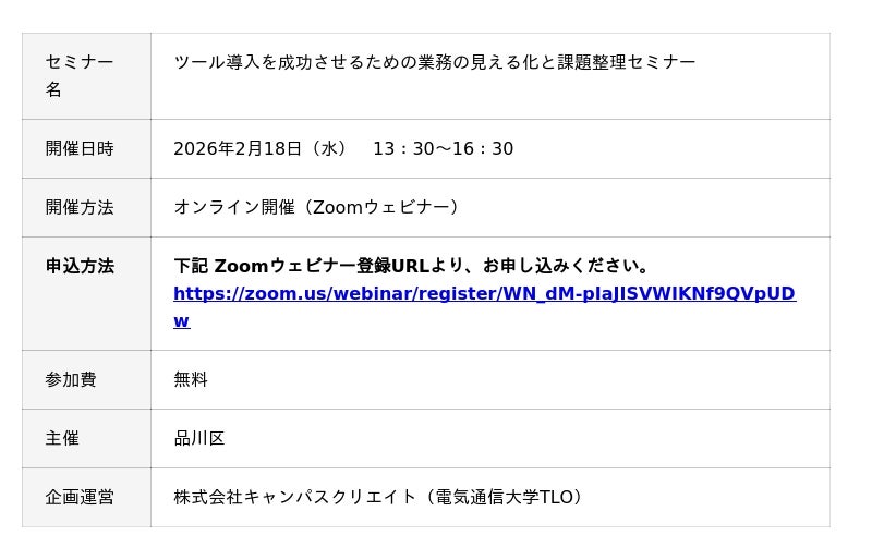 【品川区主催ウェビナー】ツール導入を成功させるための業務の見える化と課題整理セミナー【DX・デジタル技術活用推進事業】