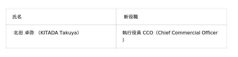 当社は、北田が有する、戦略と実行を統合しビジネス価値を最大化させる知見を活かし、顧客体験をより高い次元へと引き上げ、ブランド価値を確立させるため、今回の役員人事を決定いたしました。今後、新経営体制のもと、さらなる事業拡大に努めてまいります。